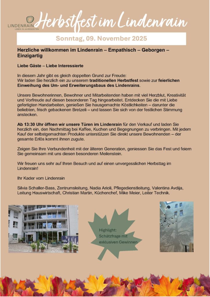 traditionellen Herbstfest sowie zur feierlichen Einweihung des Um- und Erweiterungsbaus des Lindenrains.