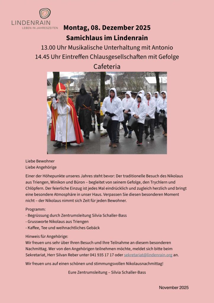 Am Montag, 08.12.2025 dürfen wir die Samichläuse aus Triengen, Winikon & Büron begrüssen. Begleitet werden Sie von den Trychler und Chlöpfer.